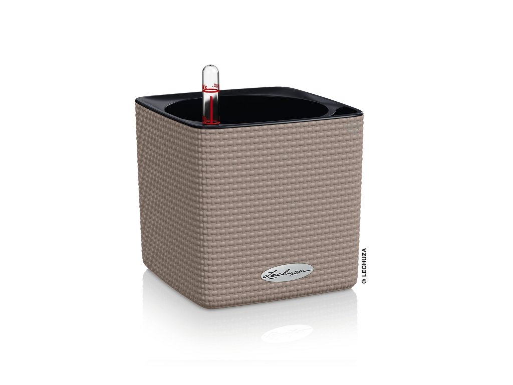 Květináče Lechuza Cube Color mají matný povrch imitující textilní strukturu. Vyrábějí se ve dvou velikostech třech a barevných variantách a vzhledem k tomu, že nemají zabudovaný přepad a vypouštěcí ventil, není možné jej použít ve venkovním prostředí. Komplet obsahuje barevný obal, vyjímatelnou vložku a zavlažovací trn. Je speciálně vyvinut pro pěstování bylinek. Bylinky vypěstované v typizovaném školkařském květináči není nutné přesazovat. Do dna květináče vsaďte na plastový trn a květináč vložte do Cube Color. V případě, že chcete květináč osadit klasickým způsobem, dokupte dělící dno s knoty.