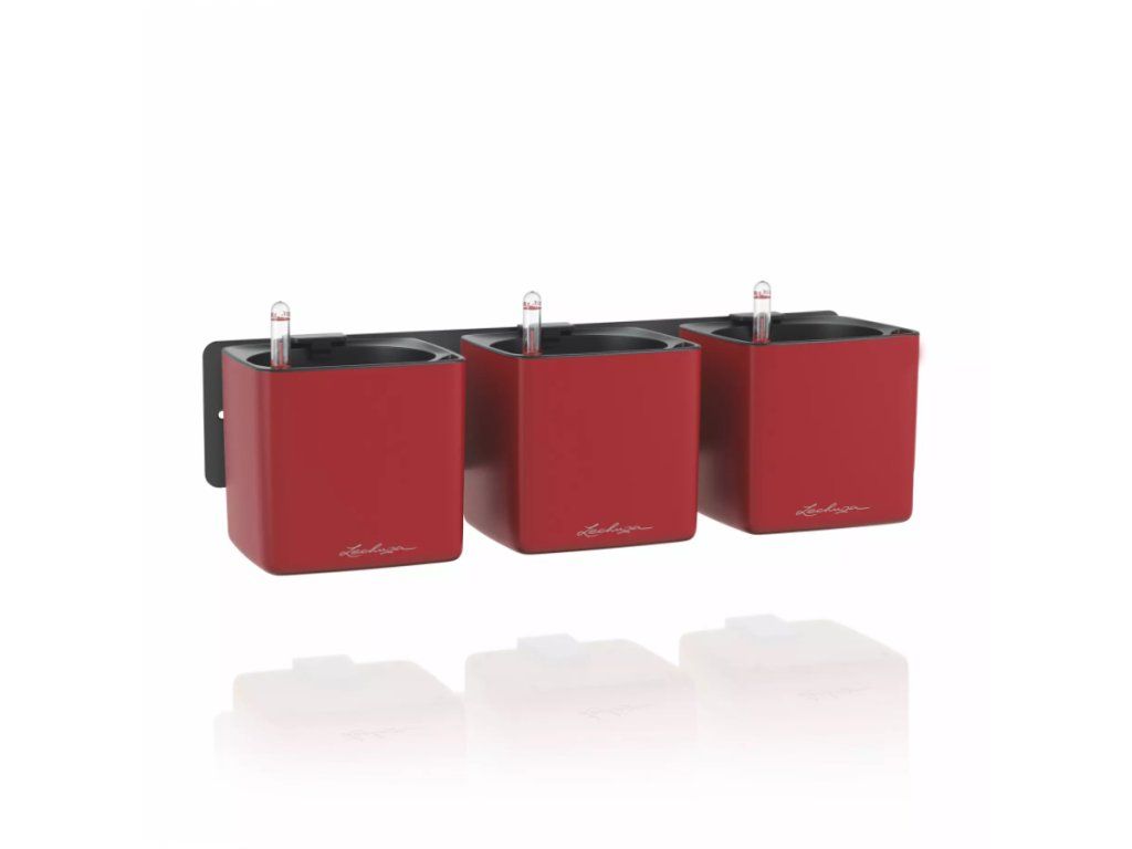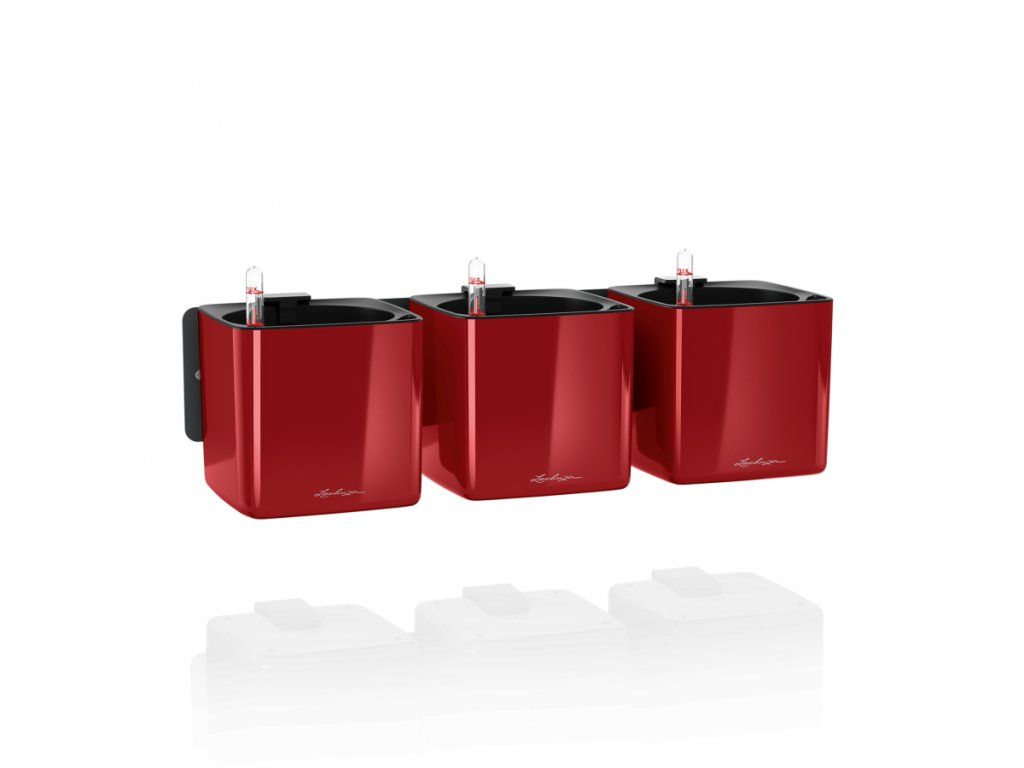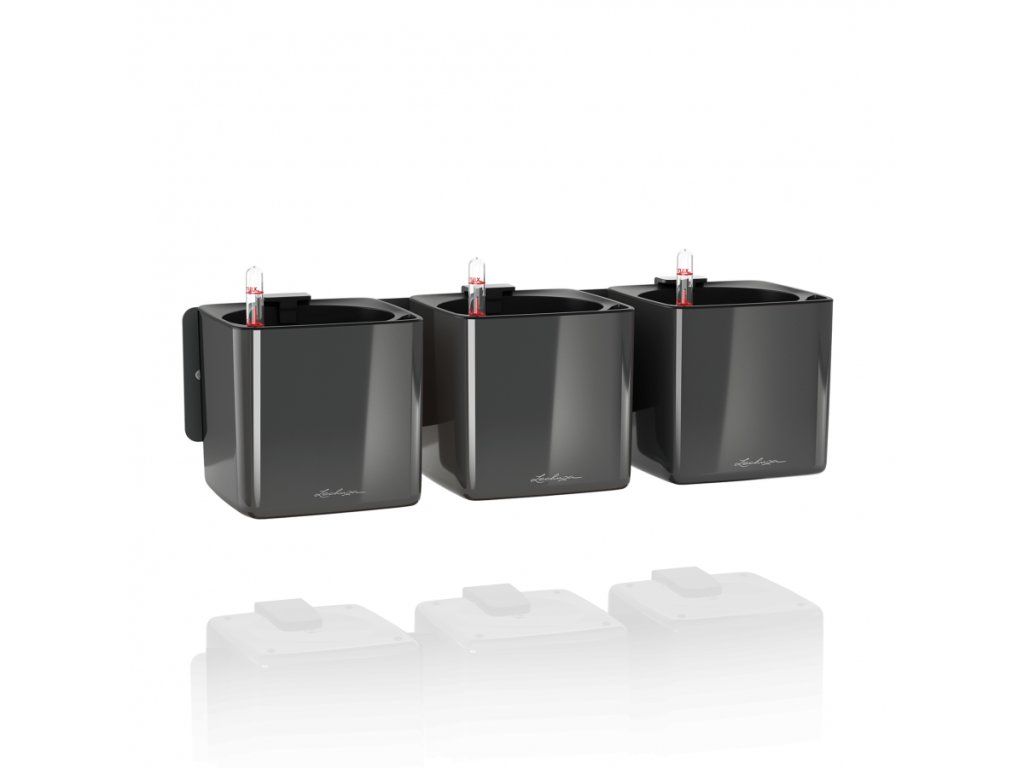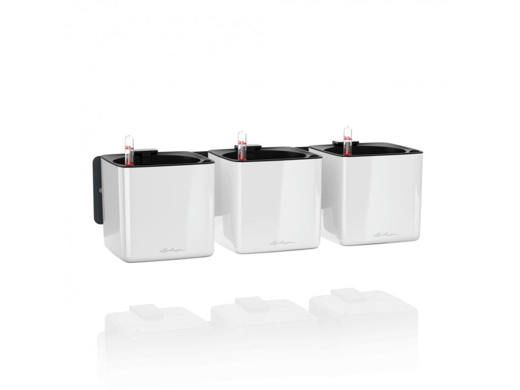 Květináče Lechuza Cube Glossy Green Wall mají lakovaný povrch s lesklým lakem. Vyrábí se ve třech barevných variantách a vzhledem k tomu, že nemají zabudovaný přepad a vypouštěcí ventil, není možné jej použít ve venkovním prostředí, kde by do nich mohlo napršet. Komplet obsahuje 3 kusy barevných obalů Cube Glossy 14 s vyjímatelnou vložku a zavlažovací trnem, 3 kusy magnetických držáků a kovovou lištu. Kovovou lištu přišroubujte na stěnu, nacvakněte magnetický držák na barevný obal a ten se díky silnému magnetu přichytí ke kovové liště na stěně. Tyto květináče se nepoužívají tradičním způsobem sázením do substrátu, ale rostliny vypěstované v typizovaném školkařském květináči (horní průměr květináče 12 cm) se vloží i s tímto květináčem do obalu Cube Glossy. Předtím ale do dna květináče zaražte plastový trn s knotem.