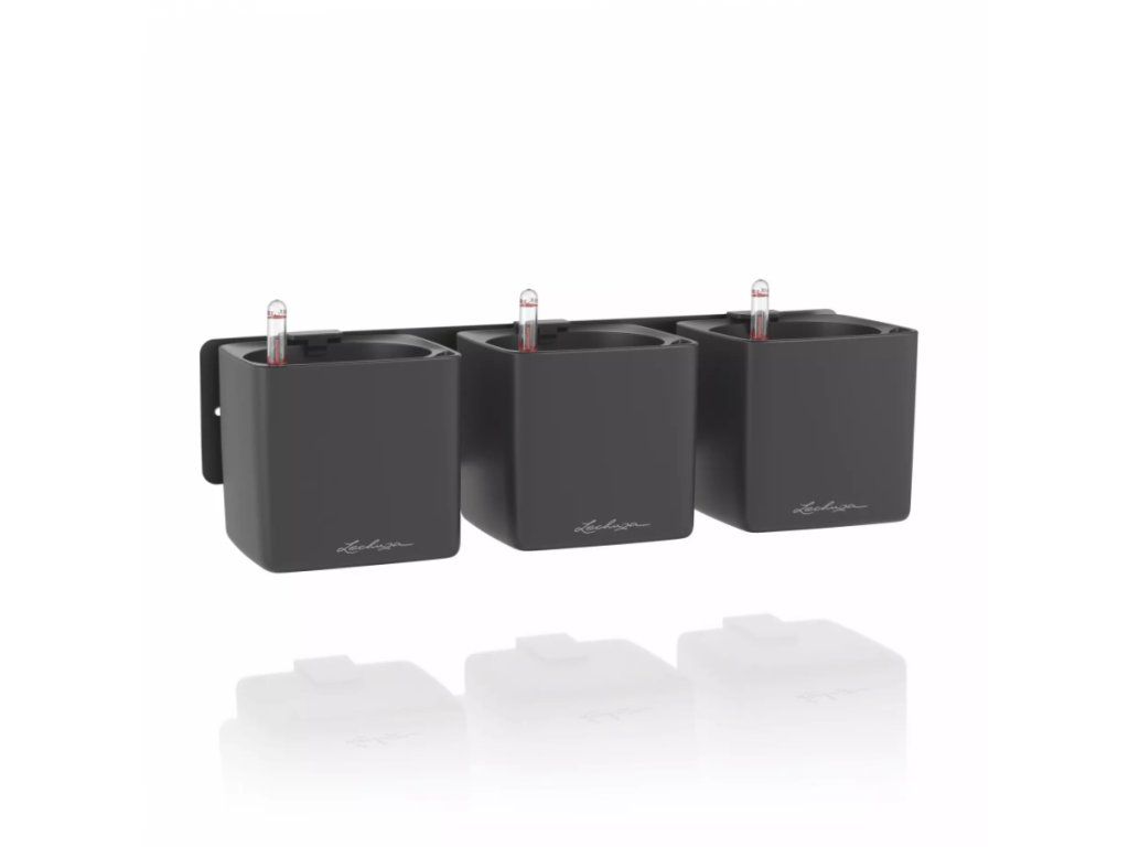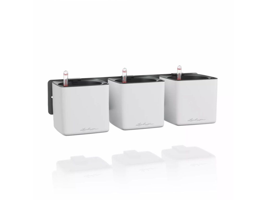 - 3 × květináč CUBE Glossy 14 s linerem + knoty + 3 × magnetické držáky + kovová deska + šroubky